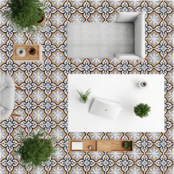 Carreaux de ciment artisanaux fabriqués à la main à partir de ciment, de sable, de pigment et d’eau. Ces carreaux sont souvent utilisés dans l’architecture traditionnelle marocaine pour créer des motifs géométriques et floraux élaborés dans les riads, les palais et les maisons. Ils sont également populaires dans la décoration intérieure contemporaine pour apporter une touche de charme et d’authenticité à l’espace.