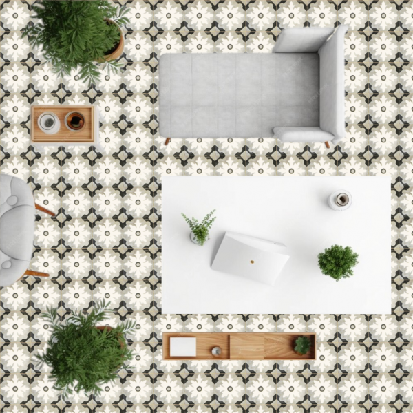Carreaux de ciment artisanaux fabriqués à la main à partir de ciment, de sable, de pigment et d’eau. Ces carreaux sont souvent utilisés dans l’architecture traditionnelle marocaine pour créer des motifs géométriques et floraux élaborés dans les riads, les palais et les maisons. Ils sont également populaires dans la décoration intérieure contemporaine pour apporter une touche de charme et d’authenticité à l’espace.