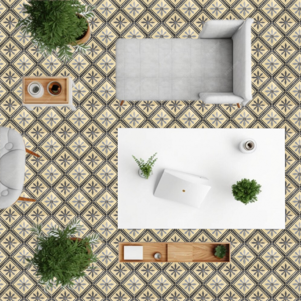 Carreaux de ciment artisanaux fabriqués à la main à partir de ciment, de sable, de pigment et d’eau. Ces carreaux sont souvent utilisés dans l’architecture traditionnelle marocaine pour créer des motifs géométriques et floraux élaborés dans les riads, les palais et les maisons. Ils sont également populaires dans la décoration intérieure contemporaine pour apporter une touche de charme et d’authenticité à l’espace.