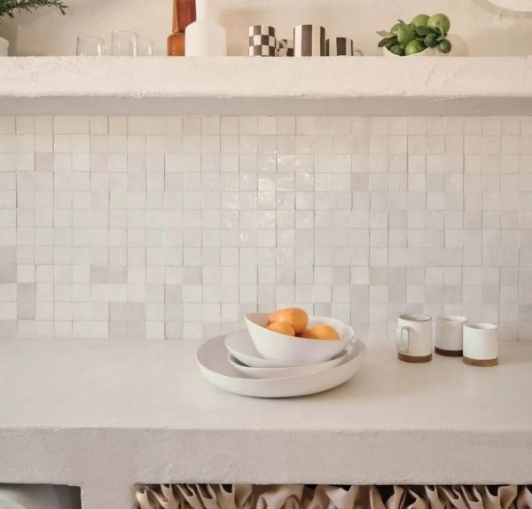Matière Naturelle et artisanale par excellence, fabriqués à Fès (Maroc) par les artisans avec les mêmes procédés depuis le XII siècle. Les Zelliges sont des carreaux de terre cuite émaillés en carreaux de différents formats. Matière Naturelle et artisanale irrégulière en surface et support présentant des nuances variées d’une pièce à l’autre. Le type de fabrication implique lors de la cuisson l’apparition de variations esthétiques. Ainsi faïencage, pointe de cuisson et esquilles participent au charme du produit.